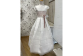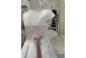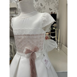 Vestido de Comunión fajín fondo rosa empolvado Montserrat Lozano