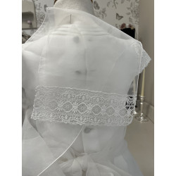 VESTIDO clásico de tablas y lorzas confeccionado en organdí  color crudo.