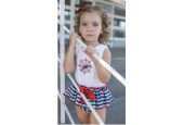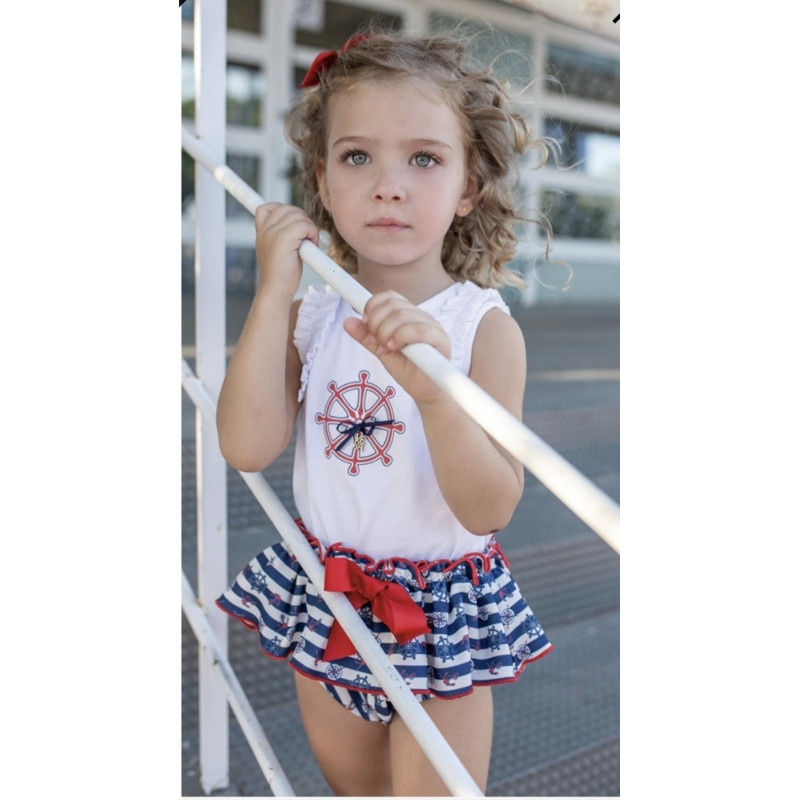 CONJUNTO marinero de 2 piezas con camiseta blanca y braguita de rayas con volante.