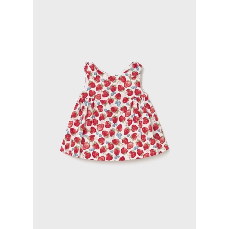 VESTIDO estampado fresas con lazada en los hombros.