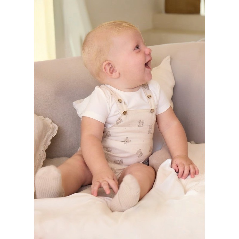 PETO en color topo con estampado ositos y CAMISETA de manga corta.
