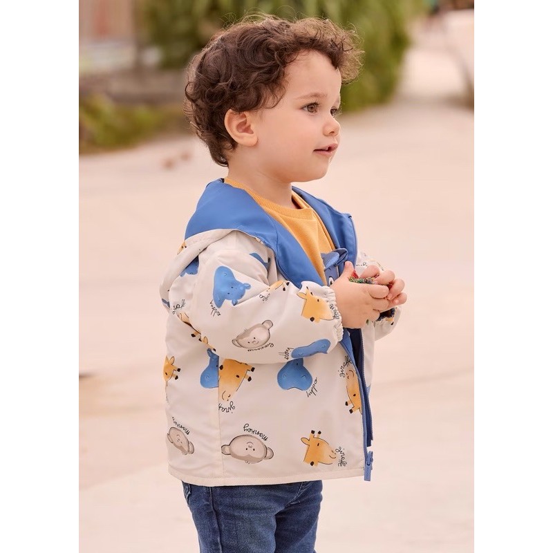CORTAVIENTOS con capucha y cremallera central reversible para bebé.
