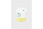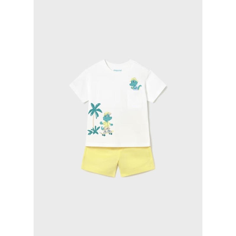 CAMISETA de algodón con estampado palmeras y cocodrilo y BERMUDA a juego para bebé.