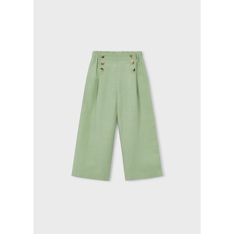 PANTALÓN largo fluido en color verde con botones decorativos para niña.