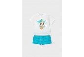 CAMISETA de manga corta y cuello redondo y PANTALÓN corto en color azul turquesa.