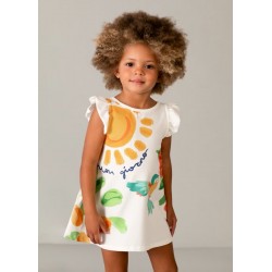 VESTIDO con serigrafía en todo el delantero de escote redondo y volantes en los hombros.