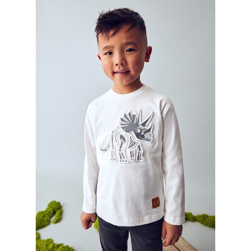 CAMISETA de manga larga yt cuello redondo para niño con relieve de dinosaurio en el delantero