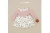 VESTIDO con cuerpo de punto y volante en el cuello en la misma tela estampada que la falda.