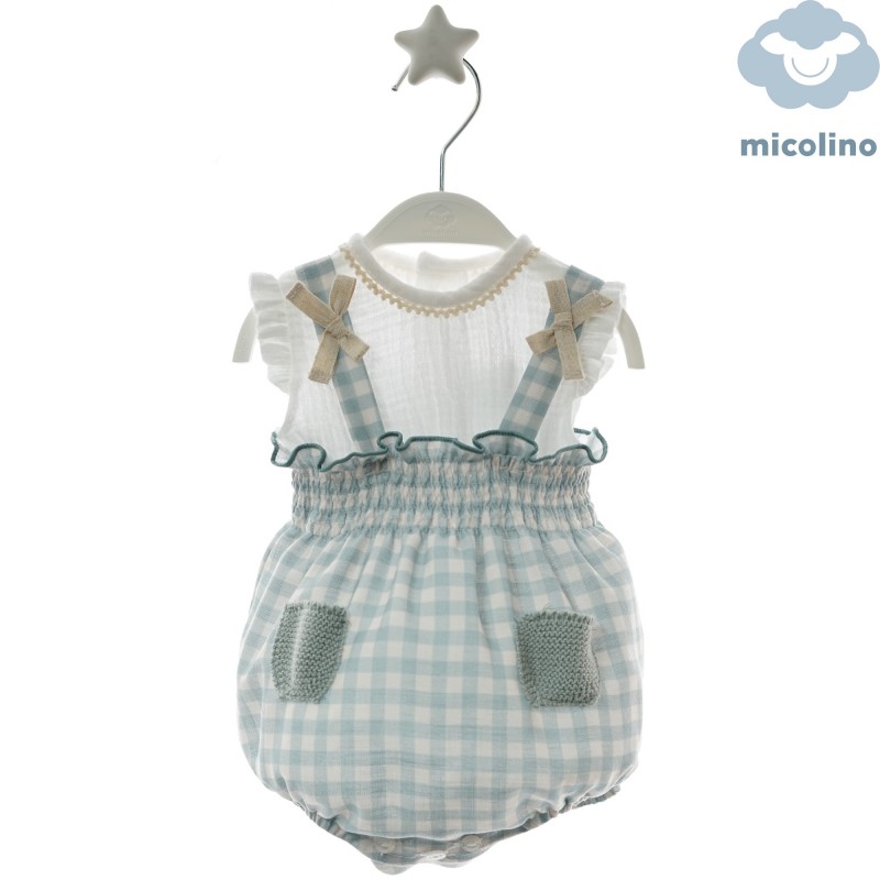 BLUSA y RANITA PETO de cuadritos verde con bolsitos de punto.