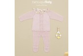 JUBÓN con volante en el cuello y POLAINA a juego en color rosa empolvado.