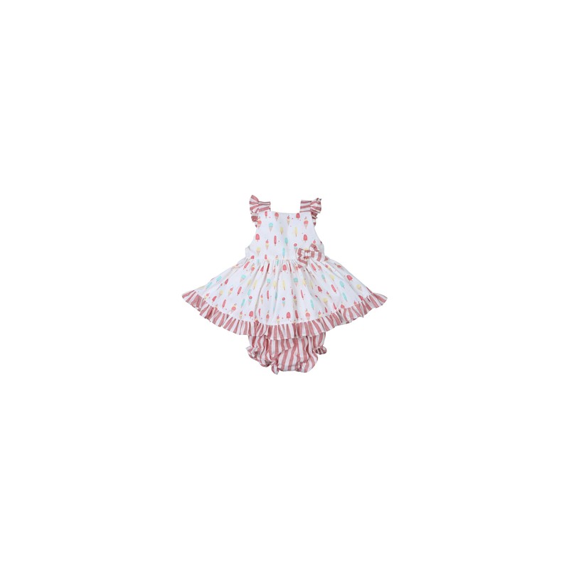 VESTIDO de tirantes con escote recto y falda con vuelo estampado helados.