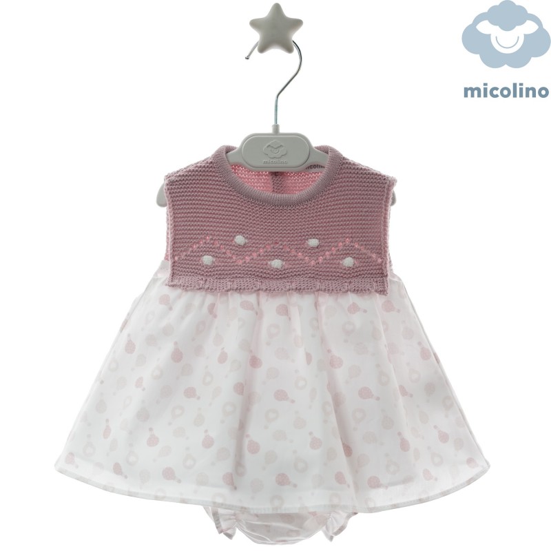 JESUSITO combinado cuerpo de punto rosa empolvado y tela estampado globos con BRAGUITA a juego para bebé.