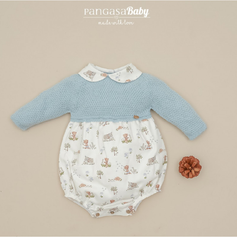 PELELE con cuello bebé combinando punto y tela estmpada.