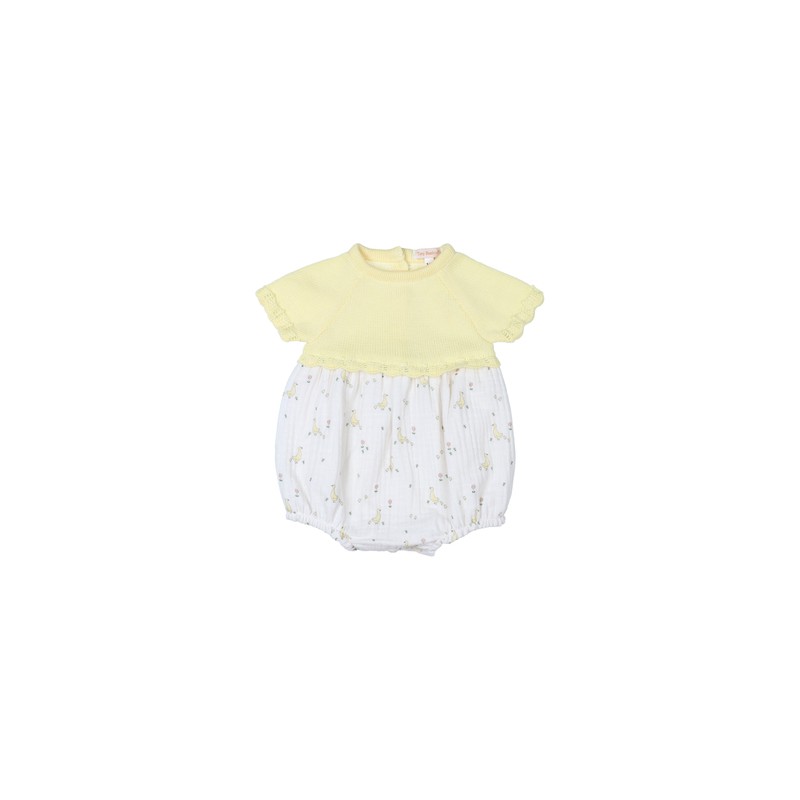 PELELE para bebé cuerpo combinado punto color amarillo y suave tejido de bambula.